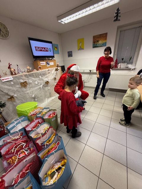 Tokrat so mu otroci sami spekli piškote, da se bo lahko okrepčal na dolgi poti okoli sveta, ki jo mora letos še opraviti. Božiček pa jih je s pomočjo sponzorjev bogato obdaril. Otroci so imeli nasmeh do ušes, in ko se je Božiček poslovil, so si obljubili, da se ponovno srečajo prihodnje leto.